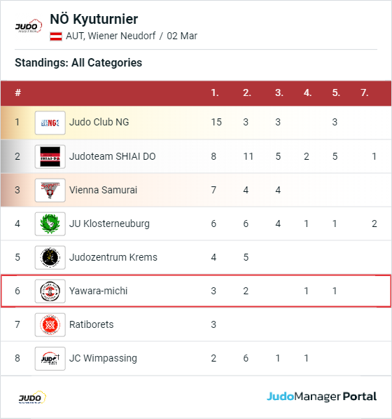 Eine Woche nach der Februar Challenge fand in Wr. Neudorf das Kyu-Turnier des JLV- NÖ statt. 228 Judo aus vier Bundesländern (NÖ, OÖ, ST, W) aus 23 Vereinen waren gekommen, um sich zu messen.